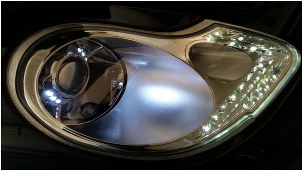 Porsche 996, 997 LED daytime driving lights with Bi-Xenon convertion - At EMD we can convert conventional lights to Bi-Xenon.